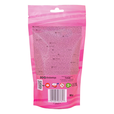 Saszetka zawiera aż 90 gramów piasku w kolorze różowym, z którego Twoje dziecko może tworzyć budowle, eksperymentować z foremkami i kształtami, rozwijając przy tym swoją wyobraźnię i zdolności manualne. Piasek Fluffy jest niezwykle miękki i lekki - wprost idealny dla małych raczek dzieci. Zabawę piaskiem umila zapach uwielbianej przez dzieci gumy balonowej.