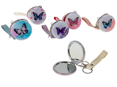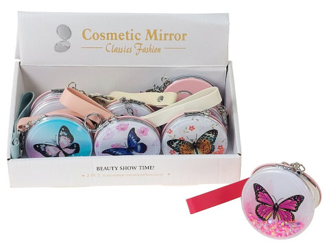 • Lusterko z motylem z płynnym brokatem i brelokiem 7x1cm okrągłe
