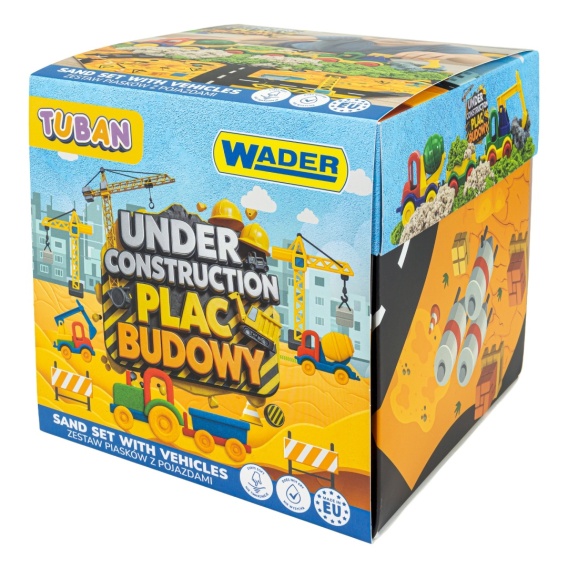 To zestaw łączący pojazdy budowlane z angażującą zabawą sensoryczną. Idealna propozycja dla dzieci, które lubią tworzyć własne konstrukcje i eksperymentować z różnymi fakturami. W zestawie znajdują się dwa rodzaje mas: piasek dynamiczny w dwóch kolorach i niebieski piasek Fluffy, które zapewniają inne, ciekawe doznania sensoryczne. Tematykę zestawu uzupełniają solidne pojazdy budowlane marki Wader. Dodatkowym atutem jest funkcjonalne opakowanie – po rozłożeniu zamienia się w planszę z motywem placu budowy, tworząc gotową przestrzeń do zabawy.