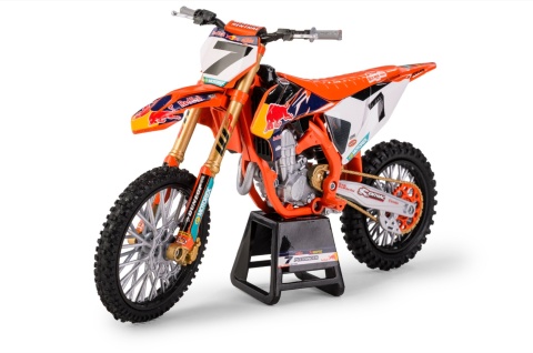 KTM 450 SX-F w barwach Red Bull Racing to maszyna Aarona Plessingera - numer 7, pasja i dynamika w każdym detalu. Model w skali 1:12 to świetna gratka dla fanów motocrossu i kolekcjonerów!