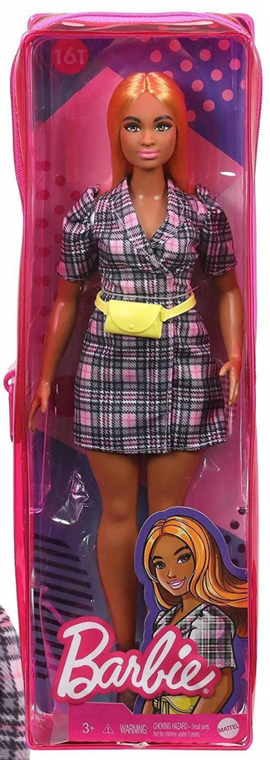 • Barbie ® Fashionistas ™ Doll nr 161, z pomarańczowymi włosami, kraciasta sukienka, czarne buty