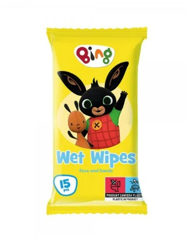 Nawilżane chusteczki z wizerunkiem króliczka Binga! Chusteczki do oczyszczania skóry twarzy i rąk niemowląt oraz dzieci skutecznie pomogą uporać się z towarzyszącymi dziecku zabrudzeniami tj. ślady po pisakach, trawie, posiłkach. Receptura płynu odpowiednia dla wrażliwej skóry, wzbogacona ekstraktem z aloesu pozostawia na skórze odczucie nawilżenia i złagodzenia podrażnień.