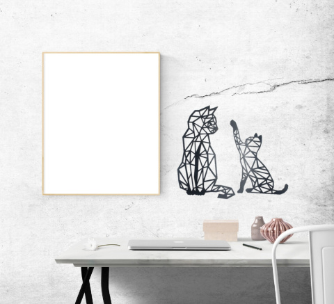 Panel ozdobny na ścianę z motywem geometrycznych kotów to stylowy element dekoracyjny. Motyw geometrycznych kotów jest przedstawiony za pomocą prostych, kanciastych linii i kształtów, które tworzą abstrakcyjny, ale rozpoznawalny wizerunek tych zwierząt. Linie wycięte w płycie, tworzą ażurowe wzory i dają trójwymiarowy efekt. Panel taki można umieścić na ścianie jako pojedynczy, przyciągający wzrok element, albo jako część większej kompozycji. Pasuje do wnętrz urządzonych w stylu nowoczesnym, skandynawskim, boho, a także eklektycznym.