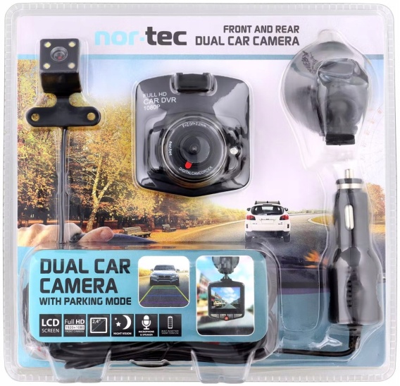Podwójna kamera samochodowa Nor-Tec pozwoli uchwycić sytuacje z ruchu drogowego, dziejące się przed i za Tobą.