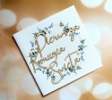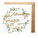 W środku pełne życzliwości życzenia, wystarczy się podpisać...Na tym polega ich czar i urok, piękna kolorystyka, z elementem drewna, przechowywane będą przez lata.