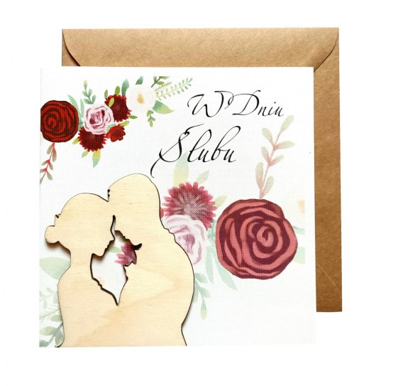 Kartka Ślubna wykonana ręcznie, w środku nadrukowane życzenia.