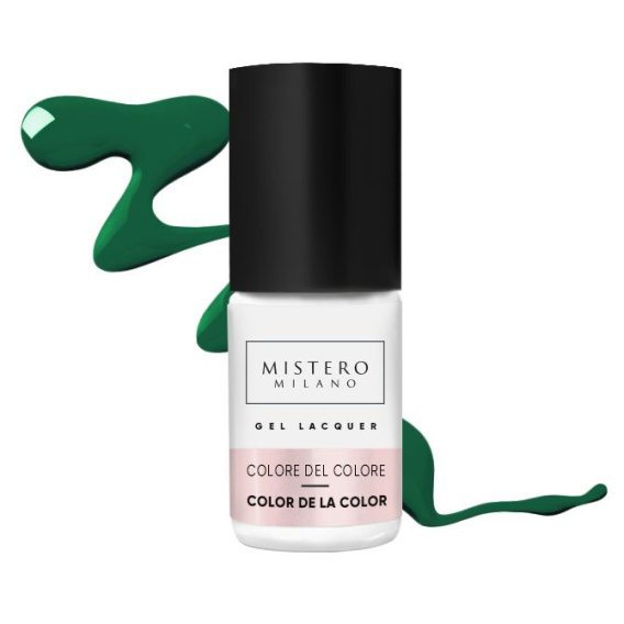 Lakier do paznokci Kolor de la kolor w kolorze butelkowej zieleni idealnie prezentuje się na całości stylizacji jak również jako tło dla finezyjnych zdobień. Ten odcień doskonale funkcjonuje w duecie z fuksją, lawendowym fioletem czy nawet pastelową pomarańczą. Najszlachetniej jednak butelkowa zieleń komponuje się ze złotem, tworząc pełen elegancji i wytworności manicure hybrydowy.