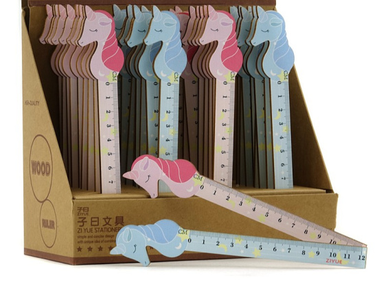 Linijka drewniana jednorożec dł.12cm; 20x19x10cm
