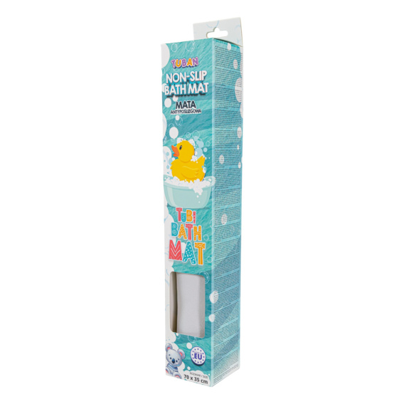 Mata kąpielowa o wymiarach 35 cm x 70 cm wykonana z trwałego i antypoślizgowe materiału. Można jej używać podczas kąpieli w wannie, w brodziku lub pod prysznicem. Przywiera do zabezpieczanej powierzchni dzięki licznym przyssawkom. Łatwa w utrzymaniu czystości — mate wystarczy opłukać po kąpieli lub zabawie. Czyni kąpiel bezpieczniejszą – zapobiega poślizgnięciu się. Sprawdzi się także podczas zabaw do zabezpieczenia powierzchni przed zabrudzeniem.