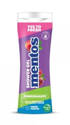 Żel pod prysznic Mentos. Kosmetyk wyróżnia się zapachem owocu granatu. Delikatnie myje i pielęgnuje. Zawiera przyjazne dla skóry i włosów środki myjące, łagodnie się pieni i łatwo spłukuje. Testowany dermatologicznie.