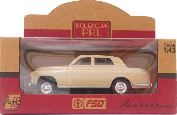 Idealnie odwzorowany model Warszawa 223 w skali 1:43. Wyprodukowany na licencji FSO. Karoseria jest wykonana z metalu, posiada elementy plastikowe i gumowe koła. Model w estetycznym, kartonowym opakowaniu typu window box, świetnie prezentującym się na półce każdego miłośnika modeli samochodów.