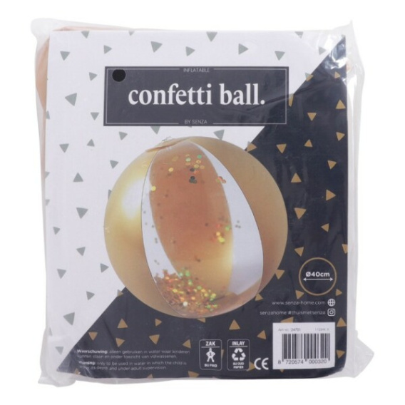 Piłka ta idealnie posłuży Ci do zabawy na plaży jak i w wodzie. Jej średnica to 40 cm, konfetti w środku zachęci dzieci do zabawy oraz zapewni doskonałą widoczność piłki. Jest stworzona z wytrzymałego i solidnego winylu co daje jej dużą odporność na uszkodzenia. Zawór w piłce umożliwia szybkie napompowanie oraz zapobiega uciekaniu z niej powietrza. W momencie gdy będziesz chciał schować piłkę można w łatwy i szybki sposób spuścić z niej powietrze przez co nie zajmie ona dużo miejsca.