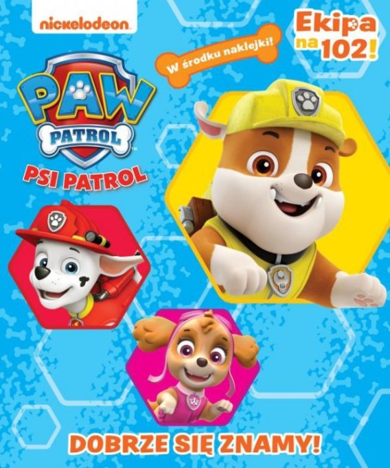 Seria książek Psi patrol. Ekipa na 102! powstała na motywach bajki o tym samym tytule, emitowanej na antenie kanału Nickelodeon. Mali czytelnicy mogą się cieszyć zagadkami, łamigłówkami oraz kolorowankami z ulubionymi bohaterami w roli głównej. Rezolutne szczenięta Marshall, Rubble, Chase, Rocky, Zuma i Skye oraz dziesięcioletni chłopiec Ryder nigdy nie odmówią pomocy potrzebującym i zawsze gotowi są stawić czoła zagrożeniom.