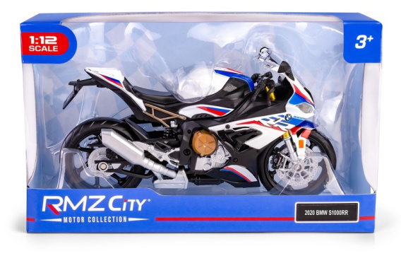 Licencjonowany model motocykla BMW S1000RR 2020 (Racing) w skali 1:12. Wykonany z metalu oraz elementów plastikowych. Seria RMZ City Motor Collection jest wiernym odwzorowaniem motocykli wyścigowych, wyposażony w skrętne przednie koło, amortyzowane tylne zawieszenie oraz podpórkę. Produkt zgodny z Europejską normą dotyczącą bezpieczeństwa zabawek.