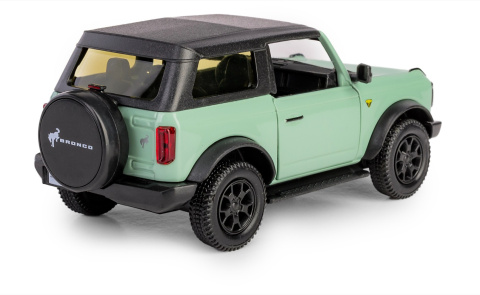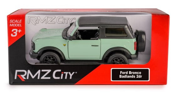 Model metalowy DIE CAST METAL - RMZ CITY Ford Bronco Badlands 2023 - Soft Top/554073ST/Zielony , skala 1:36. Posiada napęd pull-back oraz otwierane drzwi, przez które można zajrzeć do wnętrza samochodu. Metalowy pojazd z elementami plastikowymi wykonany z najwyższą starannością z materiałów wysokiej jakości. Miniaturowe spełnienie marzeń dzięki licencjonowanym modelom aut. Model spełni oczekiwania kolekcjonerów oraz dzieci podczas zabawy.