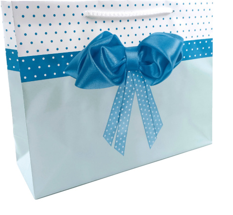 Torebka ozdobna 30x23x10 błękitna z kokardą