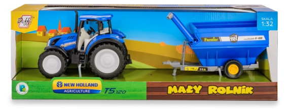 Nowa seria pojazdów rolniczych – model traktora New Holland T5.120 w skali 1:32. To licencjonowany produkt wiernie oddający szczegóły. W zestawie z traktorem znajduje się przyczepa przeładowcza. Zabawki posiadają ruchome elementy.