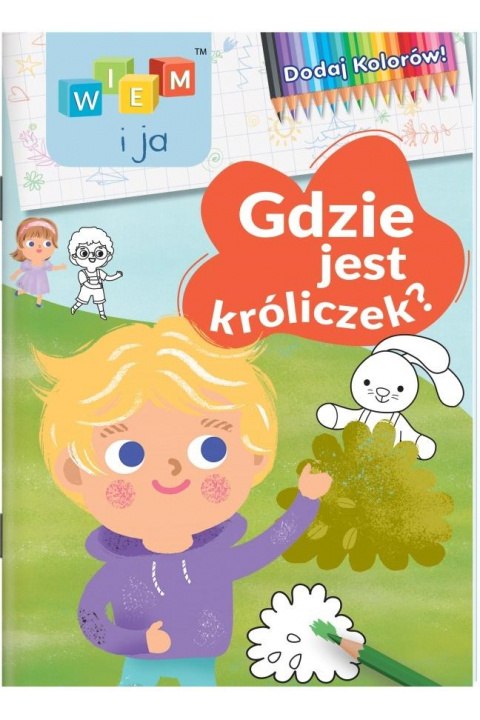 Ksiązeczka edukacyjna Dodaj kolorów to seria książeczek dla wszystkich przedszkolaków, którzy lubią zadania logiczne, zgadywanki i kolorowanie. Każda zawiera aż 24 strony ze zróżnicowanymi obrazkami do pomalowania i zadaniami pobudzającymi do myślenia, a także rozwijającymi logiczne myślenie i zdolności manualne dziecka. Bohaterowie książeczki "Gdzie jest króliczek " bawią się na placu zabaw - ich przygody są tematem kolorowanek i ciekawych zadań dla przedszkolaków.