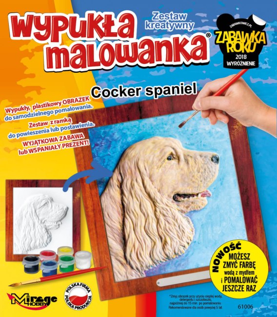 Obrazek pupila w Zestawach Kreatywnych Mirage Hobby, to wypukła wytłoczka 3D. Ponieważ jest ona wykonana z plastikumożliwe jest umycie obrazka ciepłą wodą z mydłem i powtórne jego pomalowanie. Dzięki temu można poprawiać i dopracowywać swoje dzieło do uzyskania pożądanego efektu.