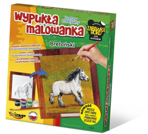 Obrazek pupila w Zestawach Kreatywnych Mirage Hobby, to wypukła wytłoczka 3D. Ponieważ jest ona wykonana z plastikumożliwe jest umycie obrazka ciepłą wodą z mydłem i powtórne jego pomalowanie. Dzięki temu można poprawiać i dopracowywać swoje dzieło do uzyskania pożądanego efektu.