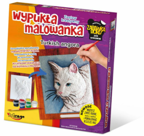 Wypukła Malowanka od Mirage Hobby to Zestaw Kreatywny dla osób powyżej 5. roku życia. Zestaw zawiera wypukły i kształtny obrazek, farbki akrylowe, pędzelek oraz ramkę z kartonu do postawienia lub powieszenia. Malowanka jest w całości plastikowa. Dzięki temu można ją powtórnie pomalować, zmywając zaraz po pomalowaniu ciepłą wodą z mydłem. Obrazek ma odpowiedni do wzoru wypukły kształt, który jest dobrze odczuwalny w dotyku. Produkt jest wymyślony i wyprodukowany w Polsce! Wszelkie prawa zastrzeżone. Każda Wypukła Malowanka to konkretny wzór z danej serii. Kolekcja jest podzielona na różne serie np. Koty, Psy, Konie, Futrzaki, Dinozaury, Jednorożce czy Kwiaty. Seria Wypukła Malowanka – Zestaw Kreatywny została nagrodzona Wyróżnieniem Zabawka Roku 2018.