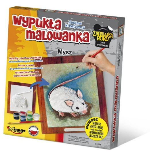 Obrazek pupila w Zestawach Kreatywnych Mirage Hobby, to wypukła wytłoczka 3D. Ponieważ jest ona wykonana z plastiku, możliwe jest umycie obrazka ciepłą wodą z mydłem i powtórne jego pomalowanie. Dzięki temu można poprawiać i dopracowywać swoje dzieło do uzyskania pożądanego efektu.