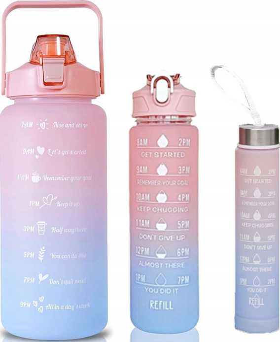 • ZESTAW 3SZT BUTELKA NA WODĘ BIDON Z MIARKĄ FITNESS różowo-niebieska