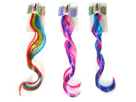 włosy - doczepiane kosmyki włosów, ze spinką, kolorowe; 32x10x2cm