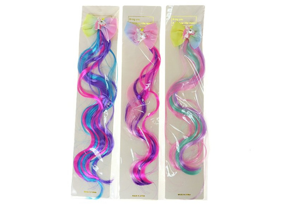 włosy - ozdoba do włosów 29cm, kosmyk z kokardką i jednorożcem